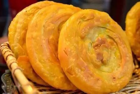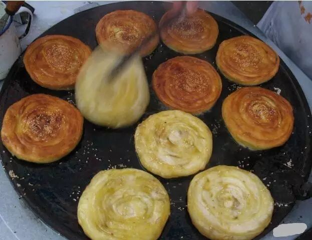 又名“酥油千层饼”。做工考究,独具风格。金黄色的饼饼儿,一口咬下去,外焦里嫩,入口化渣。除了“卧槽”,我真想不到更好的形容词喽。