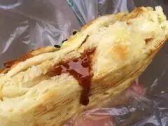在彭州你肯定听说过它,这家几款锅盔味道都还不错,特别喜欢它家的包糖锅盔,入口甜甜的,很舒服呀!2块钱一个,面皮很好吃再加上里面正宗红糖(擦口水)。。。