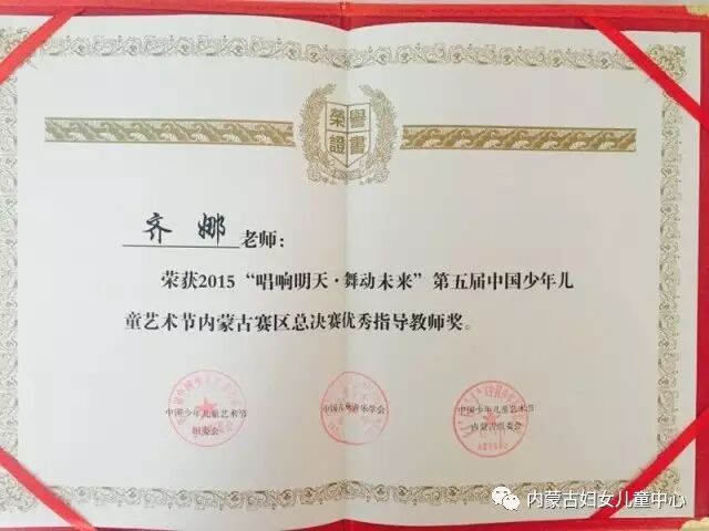 个人曾多次荣获各类奖项,其中包括由中国歌舞剧院举办的2014年首届“中歌风”全国优秀艺术考生展演优秀辅导教师奖、2015年第五届中国少年儿童艺术节内蒙古赛区总决赛优秀指导教师奖、由中国电视艺术家协会主办的第二届中华(展示)活动成人组内蒙古地区一等奖等。