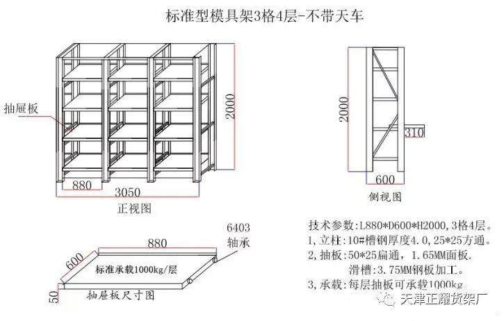 5、抽屉式模具架每格每层承重800-5000KG也叫重型模具货架;