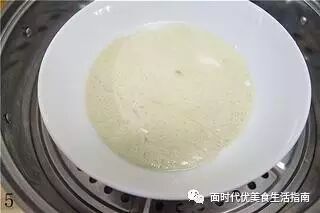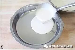 3.注意观察凉皮冒泡,闷半分钟,蒸的过程一定要盖锅盖,大火。蒸好立刻放冷水盆里冷却。
