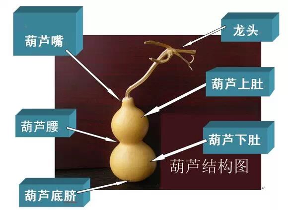 具体葫芦身体主要分5个部位:即:龙头、嘴、腰、脐、皮。