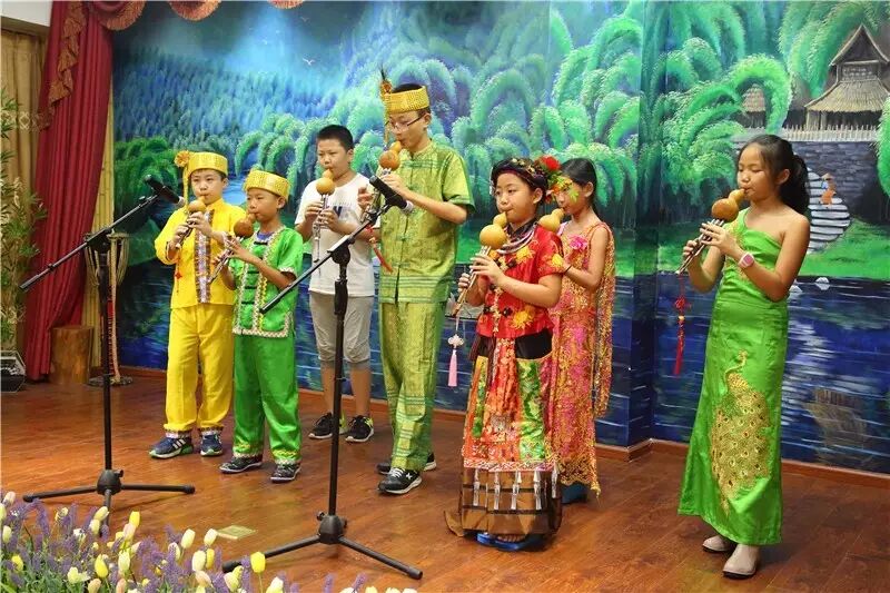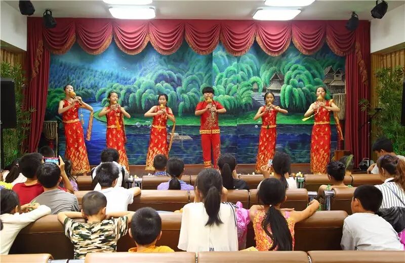 下午,一场小型的夏令营才艺汇报演出在开宏葫芦丝文化传播有限公司举行,来自新疆的何楷文和来自重庆的邬家馨担任主持。舞台上,学员们以葫芦丝会友,奏响《月光下的凤尾竹》、《春满傣乡》、《蓝色的香巴拉》等葫芦丝经典曲目,并丰富加入独具地方特色的孔雀舞和少数民族歌曲,充分诠释了葫芦丝之乡梁河和葫芦丝文化的迷人魅力。