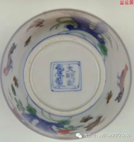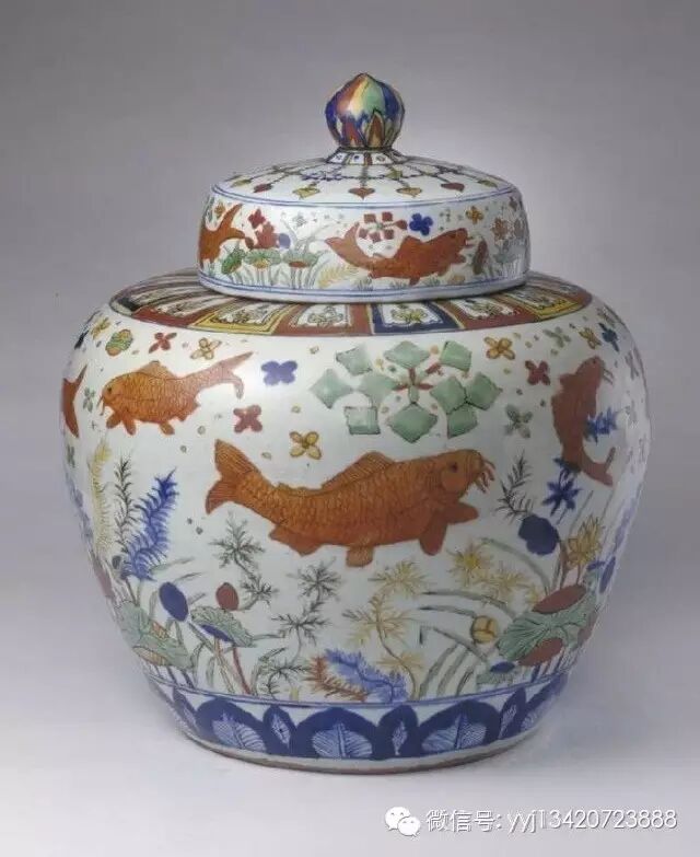 明 嘉靖五彩鱼藻纹盖罐(底部)