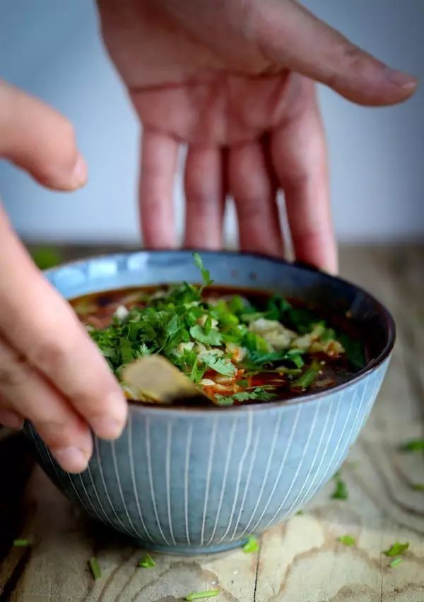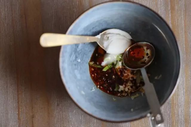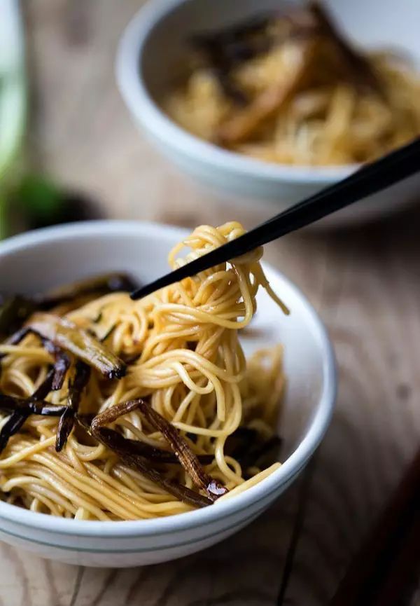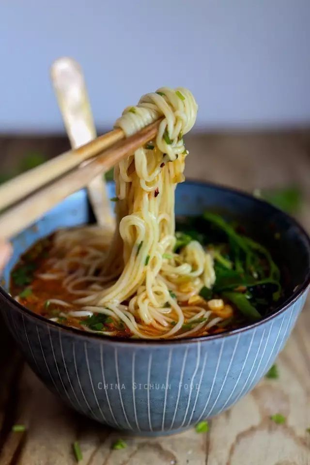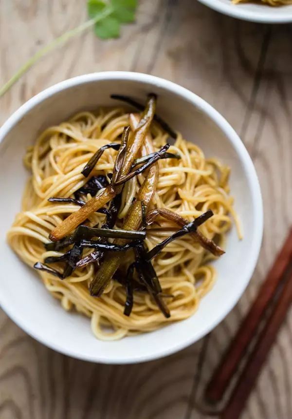 ▼面条顶部放上葱末,然后用热油一浇,你会听见cila cila的声音~