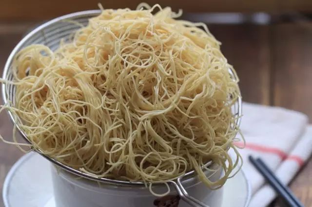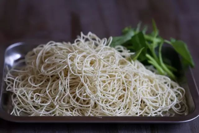 步骤:1.选择细面,煮的稍硬些,然后控干水分~