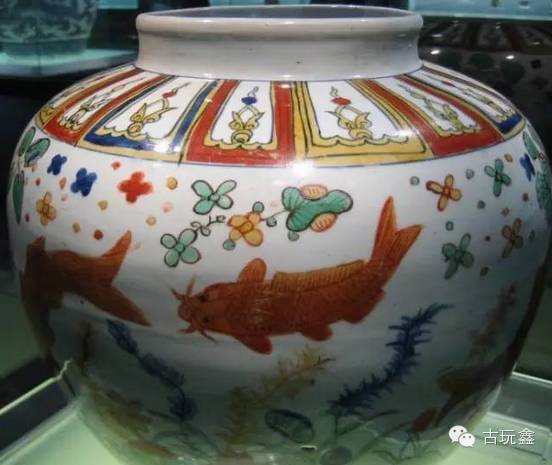 官窑瓷器的纹饰比较工整、细致,民窑器物的纹饰笔法潇洒、自由奔放,生动地表现了对现实美好生活的愿望。画面题材很丰富,人物、花鸟、飞禽走兽无所不有,有些画面取材于锦缎上的纹饰,或受小说木刻插图影响,或取材于戏剧、民间故事传说等。有些内容尤其是在官窑器物上,反映了当时封建统治者的思想意识,有些则带有封建迷信色彩。明代所画的人物比较挺拔,小孩儿头比较肥大,不合比例,前额及后脑凸出,明代早期龙鳞画得比较精细,晚期有的龙鳞画得草率,龙爪画得比清代简单,但龙爪雄壮有力。画龙比较窄瘦、龙咀较长,一般都称为猪咀龙。此时八宝纹的排列多为轮、螺、伞、盖、花、鱼、罐、肠。后仿品有时忽略此点,在鉴定时应注意观察。明代瓷器上有以文字作为纹饰装饰内容,如梵文、阿拉伯文、寿字、福字等。纹饰多为云龙、云凤、缠枝花卉,后来出现人物、飞禽走兽、八仙、人物故事等。官窑瓷器比较工整细致,民窑比较粗放、生动。