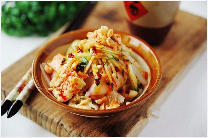 5. 加入适量的盐、酱油、陈醋、白糖、麻油、辣椒油拌匀,最后撒上花生碎即可