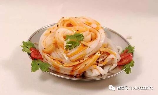 秦镇米皮是陕西户县秦镇的著名特色小吃,陕西凉皮“四大花旦”之一,因产于西安户县秦镇而得名,又叫秦镇凉皮,特点可以用四个字来描述:筋、薄、细、穰。米皮本身色白如雪,光润如脂,再配上佐料蔬菜、豆芽、辣椒油、香醋,回味无穷,别有风味。