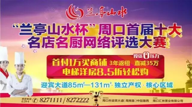 “兰亭山水杯”周口首届十大名店名厨网络评选大赛距离结束还剩8天…投票请点击下方“阅读原文”