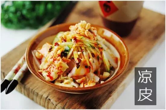 陕西的风味小吃中,“凉皮”是最受欢迎的品种之一,男女老少爱吃,尤受年轻姑娘欢迎,一年四季都有卖,夏天吃的人更多。西安的大街小巷,陕西的每个城镇,乃至乡村,到处都有卖凉皮的。一张桌子,几个小板凳,就是一个凉皮摊,只要有卖的,就有人吃,凉皮以其棉软润滑,酸辣可口,爽口开胃,不但是街头小吃,而且登上大雅之堂。在陕西各大饭店、饭庄、酒楼经营的陕西风味小吃和陕西风味小吃宴中,凉皮是必不可少的。