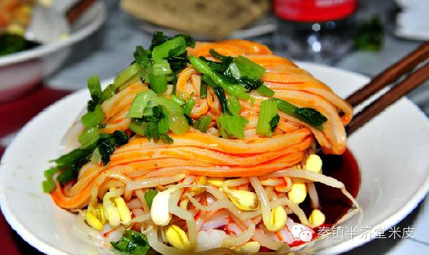 长期以来,在关中地区流传着“乾州的锅盔岐山的面,秦镇的皮子绕长安”的俗语。可见,秦镇米皮很早以前就与乾州锅盔、岐山臊子面齐名为关中地区三大著名面食。