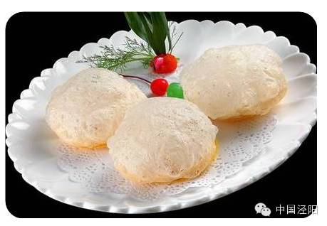 原本是宫廷御膳,后来传入泾阳,色泽乳白,表皮膨松,如轻纱制就,蝉翼捏成,口感松脆,广受吃货的喜爱……