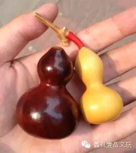 盘玩葫芦的最高境界,是使其变色至后来的紫红,深枣红色,全身发亮,挂瓷儿、上色,呈现红玛瑙色。