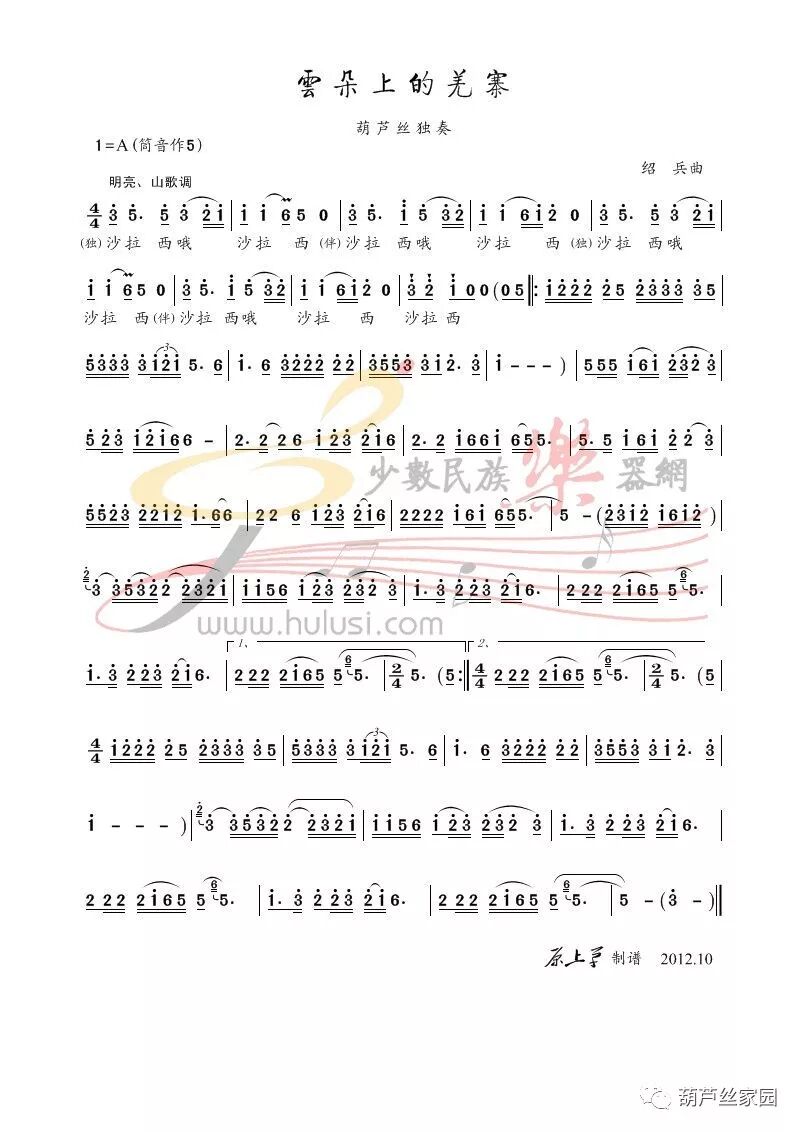 一道道山梁 一块块石板,一块块 一块块石板,铺向云朵的家乡,印着祖先的足迹,刻着西羌人千百年的沧桑,吹响那古老的羌笛,唱起代代相传的歌谣。葫芦丝《云朵上的羌寨》音频