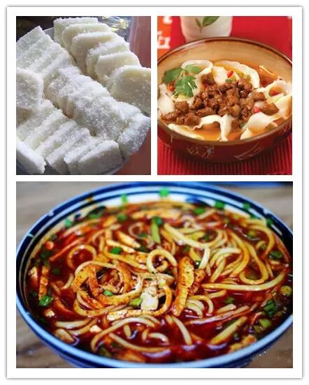 姜丝拌汤、炕抗馍、揽饭、安康蒸面、康兮寿兮黑米糊、蕨粉皮子、岚皋魔芋……