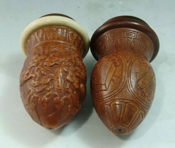 五、雕刻葫芦,这里就不做刀刻还是针刻的细分了,很好理解,就是用刀或针在葫芦表面雕刻,最后施墨。以下是部分个人藏品: