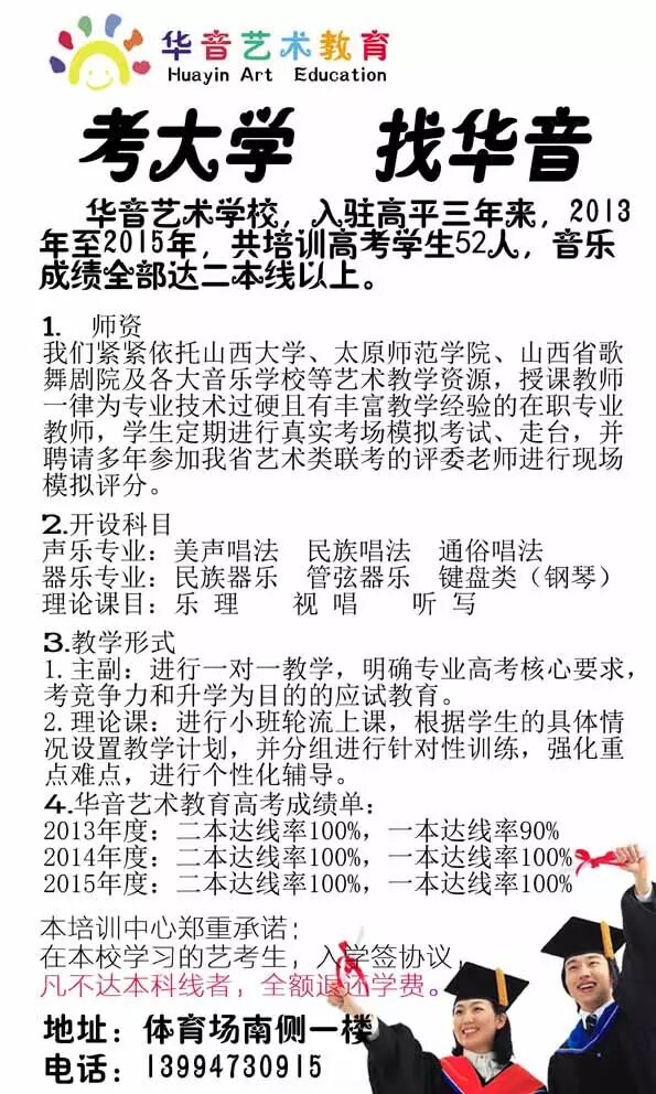 为庆祝华音艺术教育连续三年音乐高考本科达线率100%,特推出此次