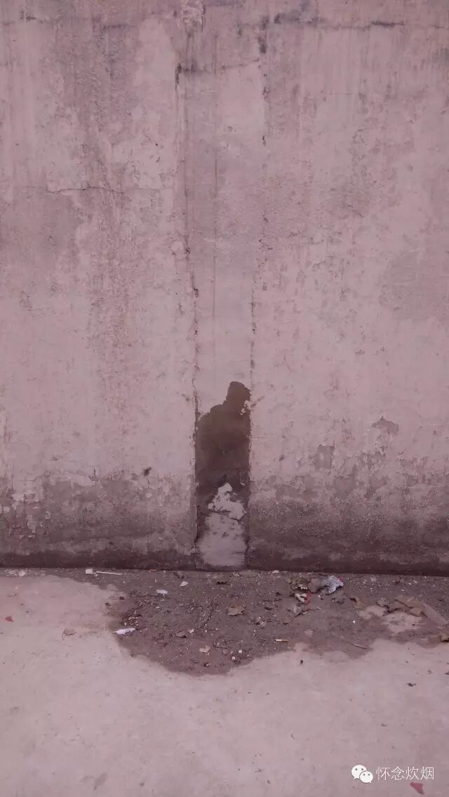 就像是下图中单位后墙上经风雨冲刷斑驳的墙皮渍迹,多少年也没有人觉得他是什么,去尿尿时眼睛没闲着,向外瞅着怎么也觉得它就是一道风景:一位工人倚于高墙,低头点根烟。![]()