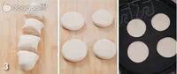 3. 揉好的面团分割成合适的大小,4-6份均可。然后每份分别揉圆,如图用擀面杖擀成厚度小于1cm的面饼。电饼铛烙约2-3分钟至两面微黄,约八九成熟即可。