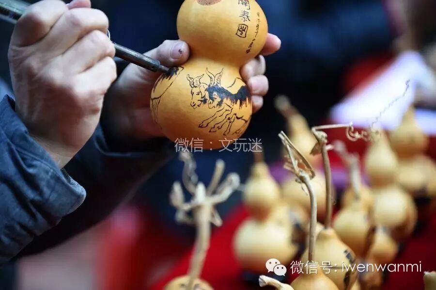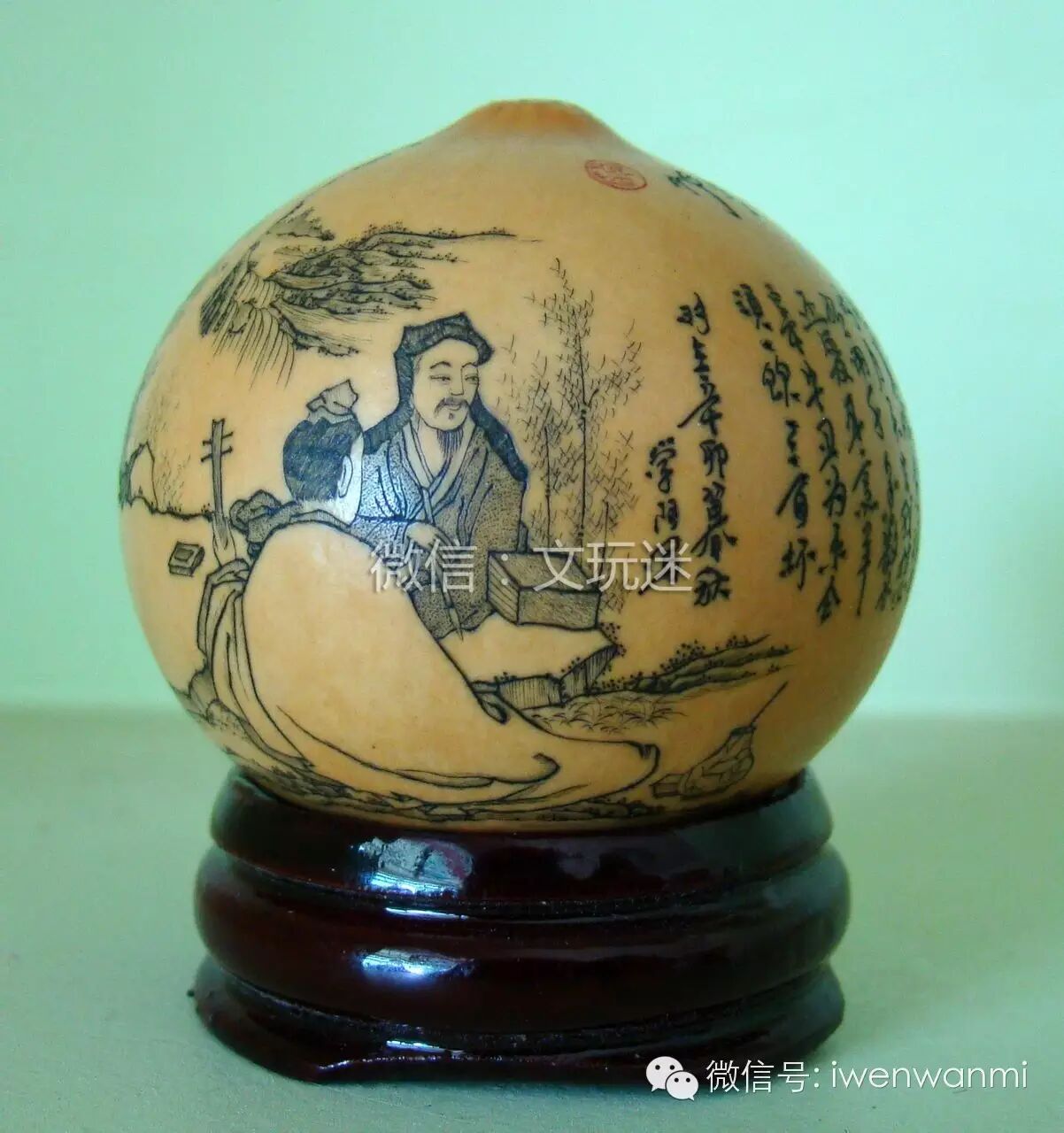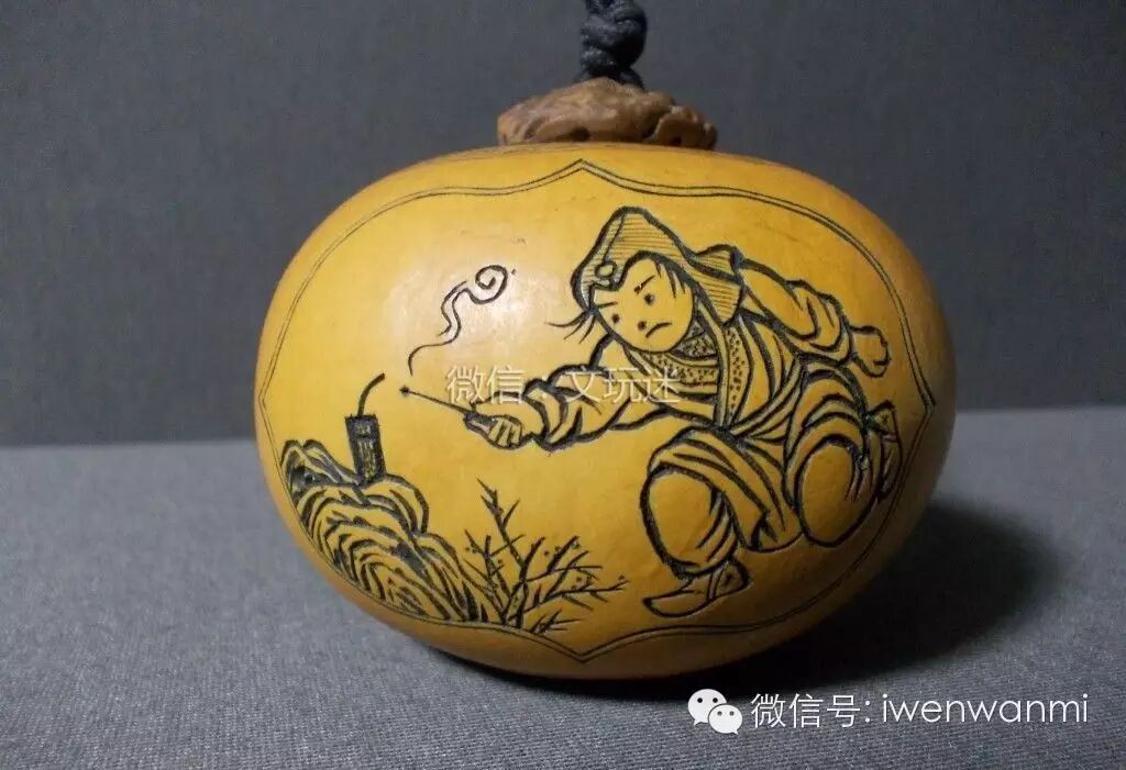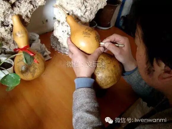 这个主要的工具其实就是电烙铁,通过温度在葫芦上作画,烫画也是一门工艺哈!