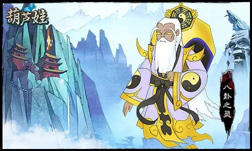 传说孕育葫芦娃的葫芦籽,就是由太上老君的紫金葫芦历经千年结出。所以说,葫芦娃与太上老君的渊源颇深,,太上老君以自身五百年道行,凝结阴阳之气,幻化出了带有中正平和之意的八卦之灵,以此帮助二娃脱胎换骨,并与其一起斩妖除魔。