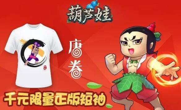 值此一周年之际,官方也为一路支持并且喜爱葫芦娃的玩家们准备了一份潮流的衣装,由唐卷服饰纯手工织绘的价值“1000”元的短袖。由于是纯手工打造,因此一共只生产了200件。你没看错,全宇宙就这200件终极限量珍藏版!虽然只有“1000”元的价值,但是你有钱也买不到!因为我们只送不卖,就是这么任性!穿上了它就是身份的象征,一口气上五楼不费劲了,倍儿爽!自4月11起登录葫芦娃官网(http://hlw.gamedo.com.cn/)便可参与抽奖活动,一次没抽到的朋友也不用灰心,活动期间每天都有数件放出,满足你的渴望。