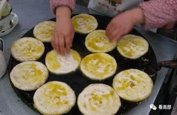 那面饼金黄蓬松之时,就揭开平底铁锅,放进肚大口小的的桶里一溜儿沿灶膛泥台竖置摆开烘烤(微波炉、烤箱都可以烘烤哦),片刻工夫,那面饼便烤制得变成了蓬松酥脆的飞碟一般。