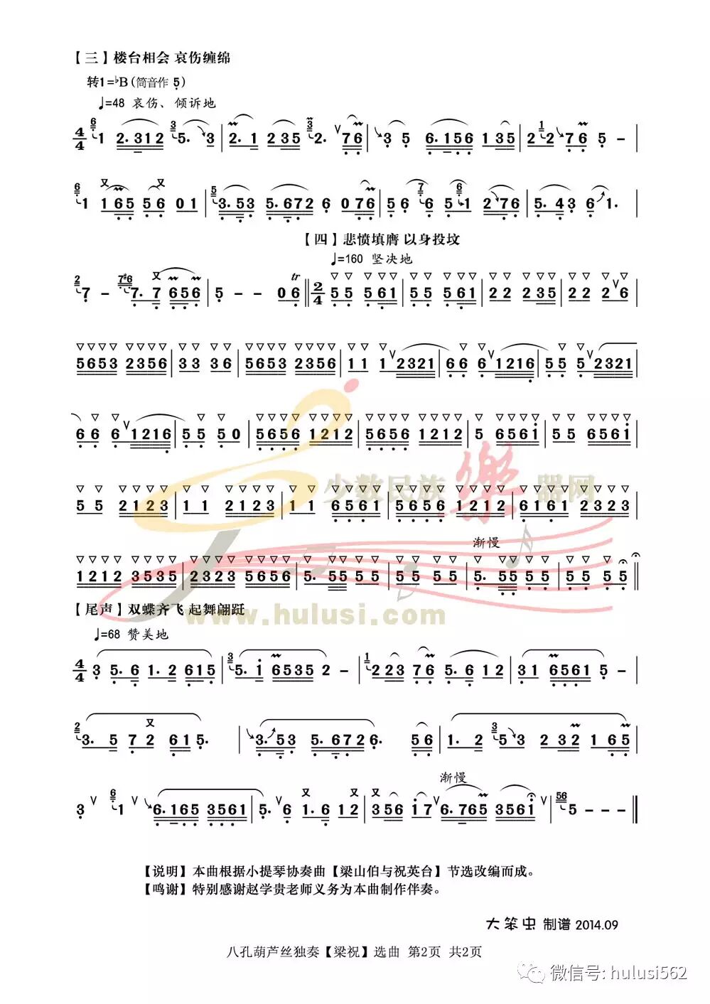 《梁祝》是一首深受大家喜爱的小提琴协奏曲,家喻户晓,广为流传,并有多种民族乐器移植演奏。其主题音乐适合用八孔或七孔宽音域葫芦丝演奏。乔志忱老师将《梁祝》选曲移植成葫芦丝独奏曲并标注指法,由孙宝泽老师精心示范演奏。此次重新发表三件套,供大家用宽音域葫芦丝练习和演奏参考。