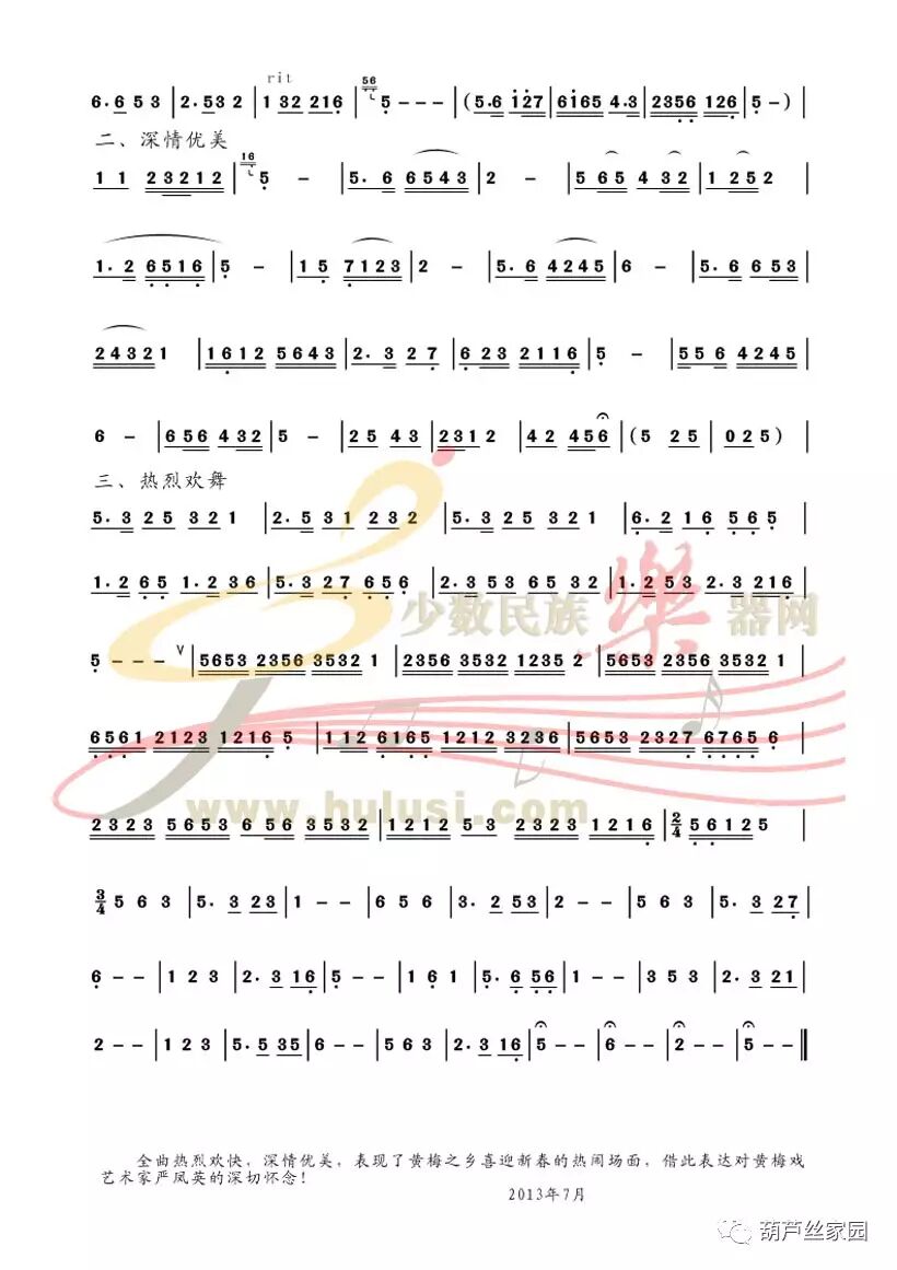 赵荫滨:安徽省民族管弦乐学会 副会长安徽省葫芦丝巴乌专业委员会 会长 全曲热烈欢快,深情优美,表现了黄梅之乡喜迎新春的热闹场面,借此表达对黄梅戏艺术家严凤英的深切怀念。