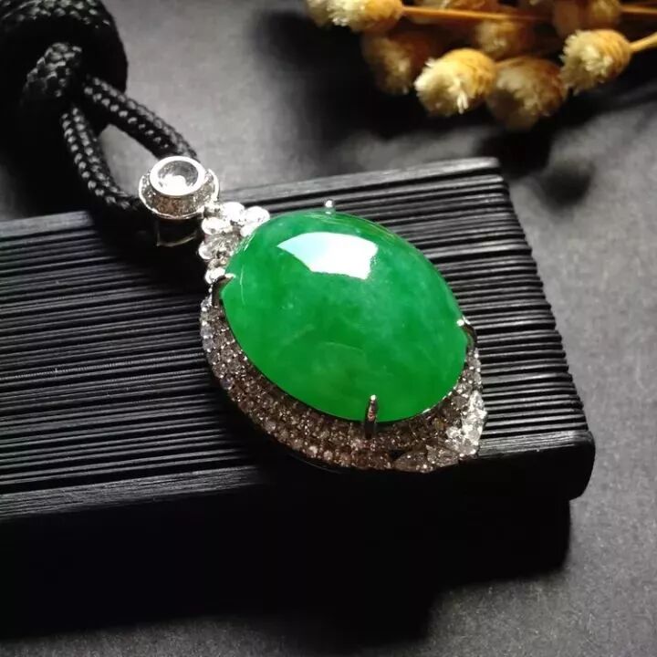 24.18k金满色阳绿鸽子蛋翡翠吊坠