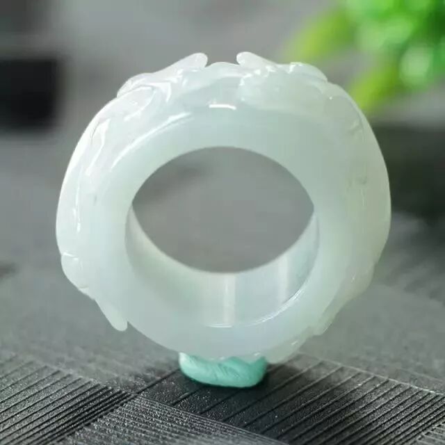 31.冰糯种淡绿(淡紫色)螭龙翡翠扳指