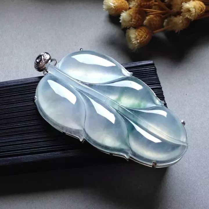 16.18k金镶嵌冰种饱满飘花翡翠叶子吊坠