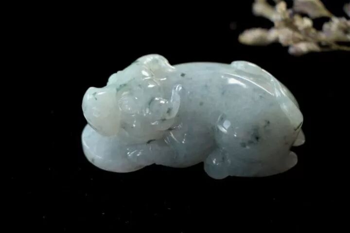 7.精品冰糯种淡紫色牛气冲天翡翠挂件
