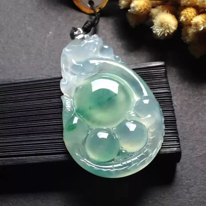 1.冰糯种白底飘绿龙钩翡翠挂件