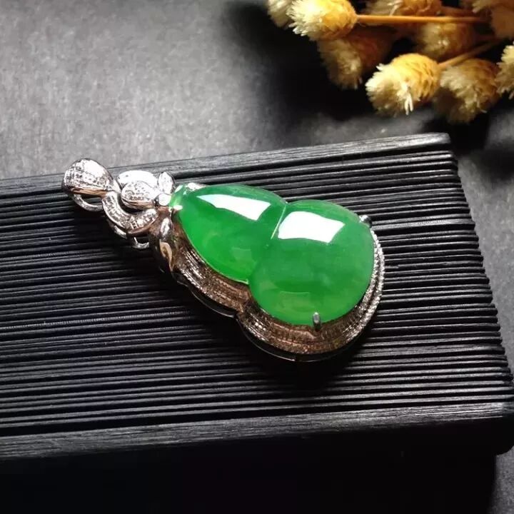 15. 18K金镶钻满色阳绿翡翠葫芦(已被抢购)