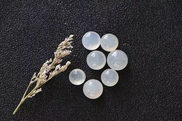 5.冰种白色飘花翡翠蛋面(一手6颗)