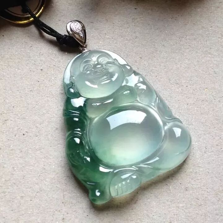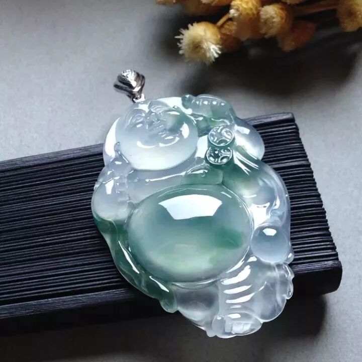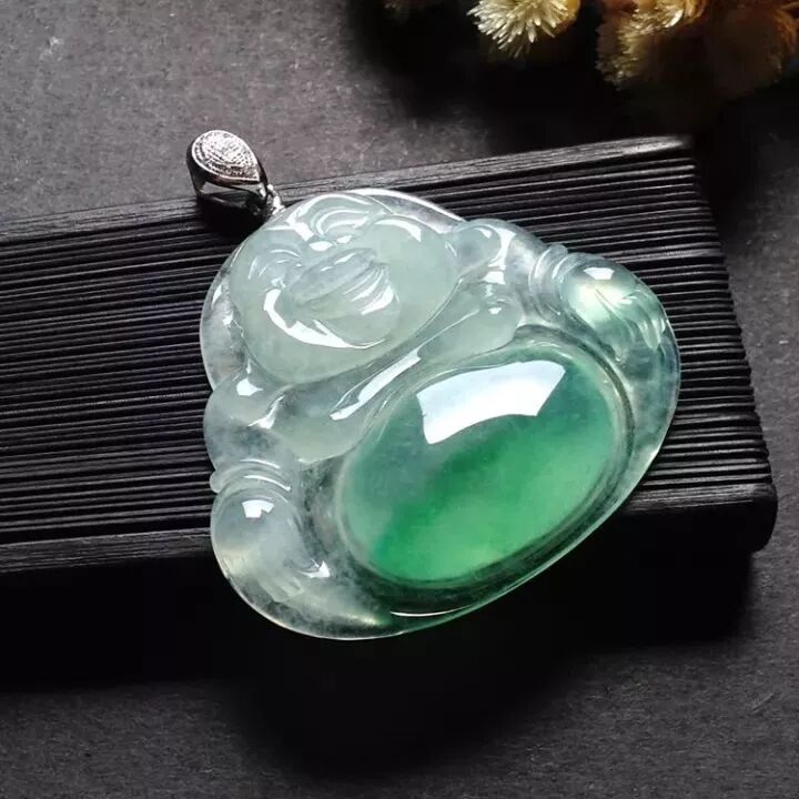 22.冰种飘绿花翡翠弥勒佛吊坠