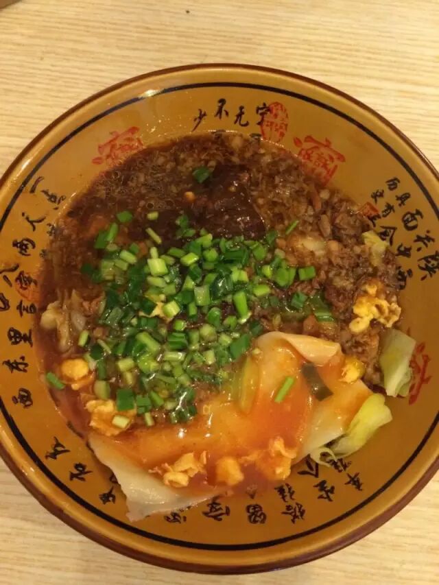 一家非常有名的地道面馆,他家的面条是一种很宽的面条,非常有嚼头,招牌是三合一面:牛肉臊子+西红柿鸡蛋+炸酱,口味香浓,有些偏咸。吃面时,可以些店内的搭配小凉菜。