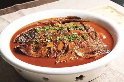 这款菜的鱼头酱的复合味非常好,颜色也不错,符合大众口味,值得推荐。特别是炖制过程中,加入了香菜、香葱、西红柿和青尖椒,更能突出菜肴的香味。