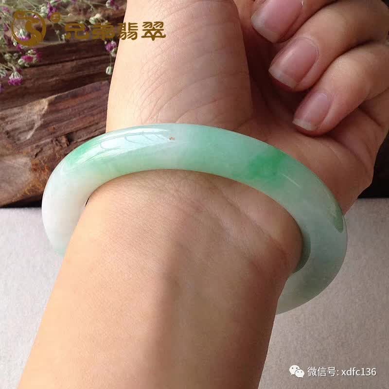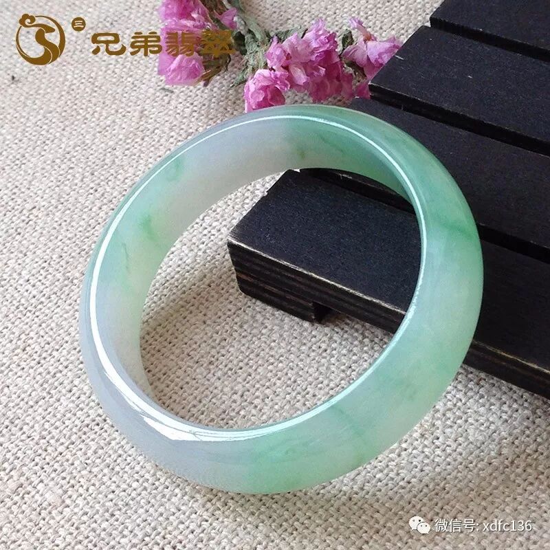 编号59652老坑高冰起光刚味飘花正装手镯(价4.3W)口径:56.1*12.2*8mm/55.6g 有纹 无抠感 高冰老种,水头不错!整圈起光感~自然光下尤为漂亮~清新的底色,气质尽显,飘花缥缈,增显韵味!杠杠的行家货!推荐!