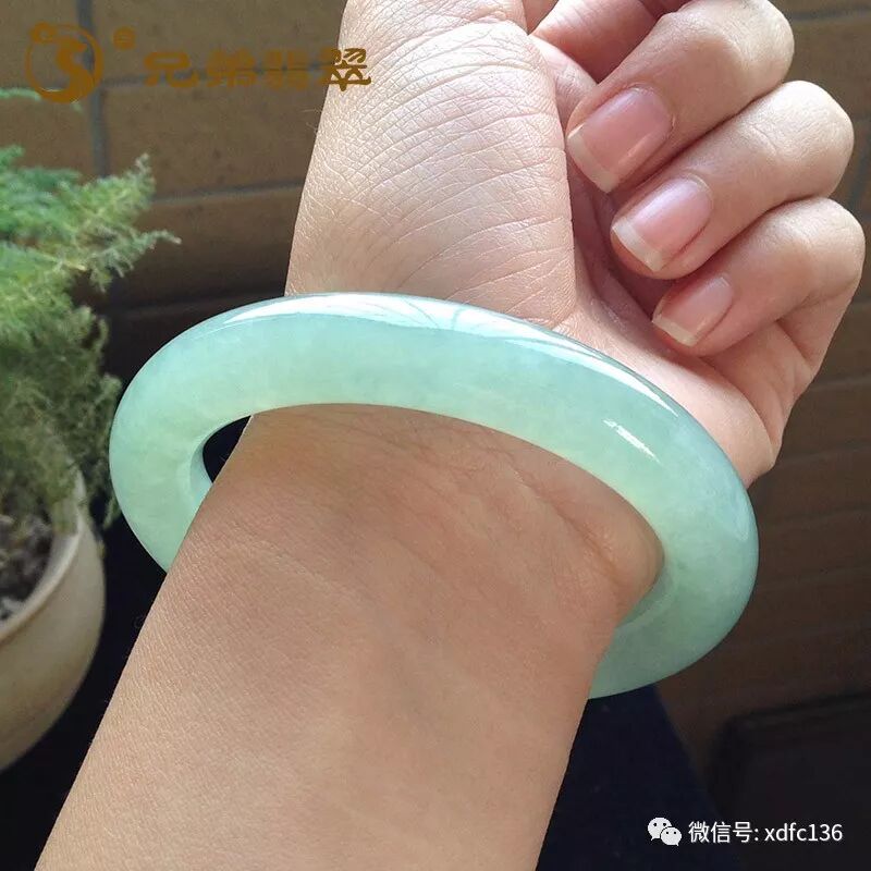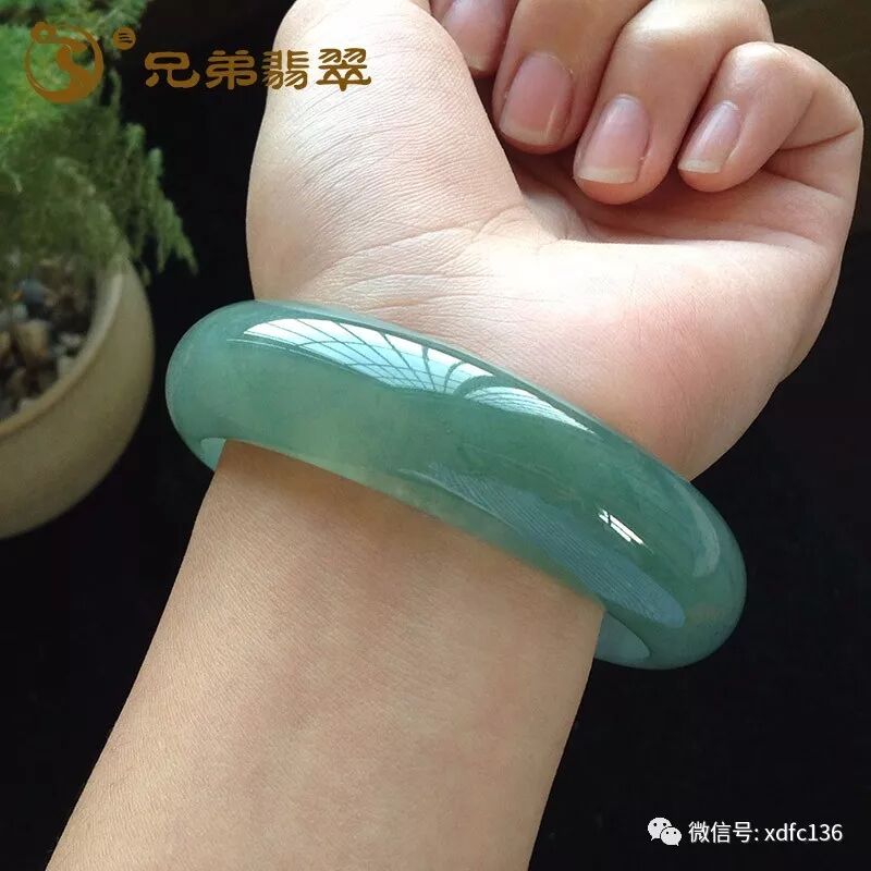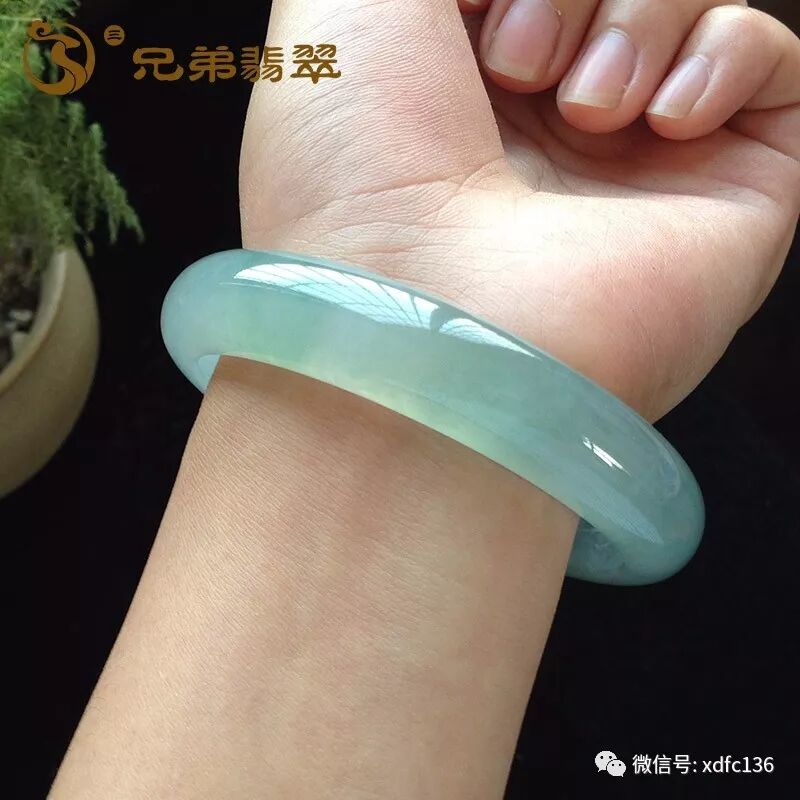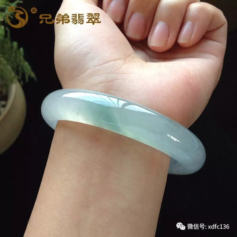 编号59657老坑高冰起光起胶飘花正装手镯(价5.3W)口径:56.6*12.3*7.5mm/52g 无纹裂 有棉线 瑕不掩瑜 老坑高冰种,冰润的质地,底子细腻,水头足,起胶起光,飘花水中游动,鲜明亮丽,肤色衬托下,种水更饱满!行家货,懂的入!