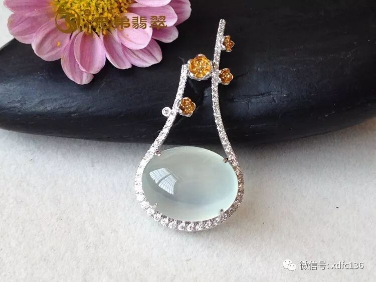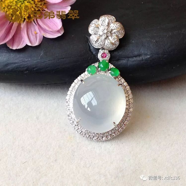 编号R1629高冰起光大蛋面特色吊坠18K金伴钻秒杀款(价9800)规格:裸石12.8*16.6*2.8mm 连金39*19.3*11.1mm/5.7g 无纹裂