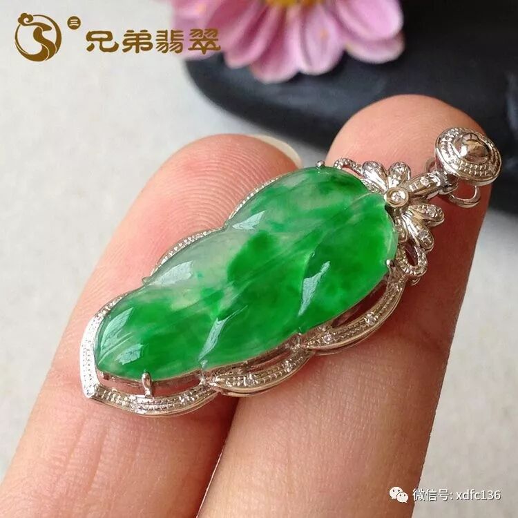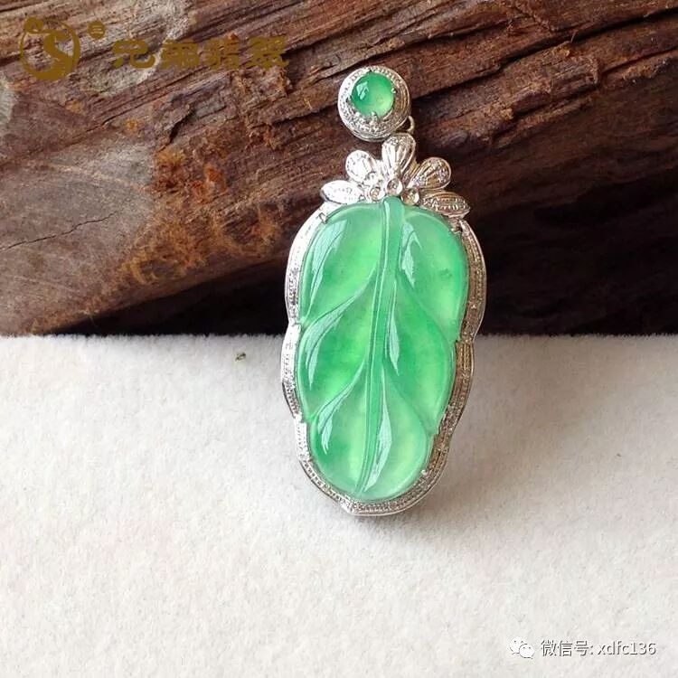 编号R1633高冰起光飘绿树叶吊坠18K金伴钻秒杀款(价5200)规格:裸石24*13.2*1.5mm 连金37.5*16.2*5.8mm/3.7g 无纹裂