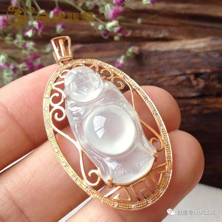 编号R1623冰晴水站佛吊坠18K金伴钻秒杀款(价5200)规格:裸石26.8*16.7*3.6mm 连金41.9*19.9*9.4mm/6.2g 无纹裂