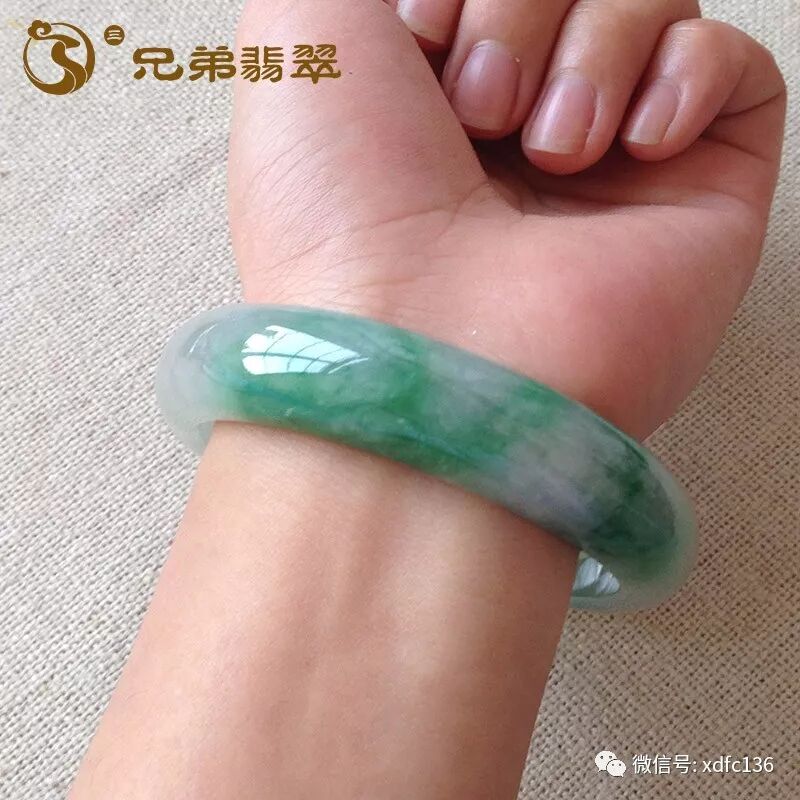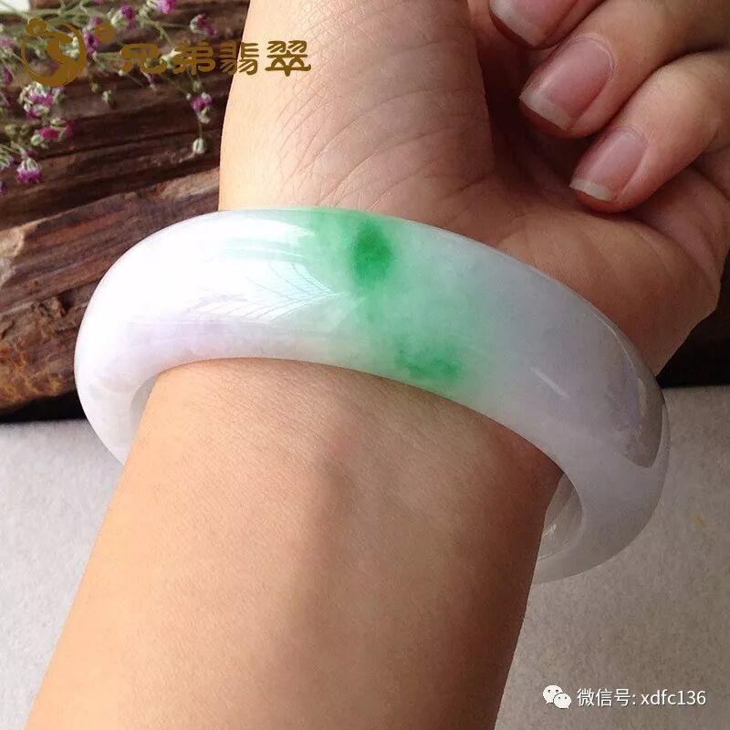 编号59638老坑一抹阳绿紫罗兰底正装手镯(价1.9W)口径:56.9*18*9.2mm/99.7g 有纹 无抠感 大石头起货,条形非常厚装,用料十足,很强存在感!底子均匀,干净细腻,水头不错,淡紫底,飘抹鲜丽的阳色花,很亮眼!很霸气!喜欢的收!