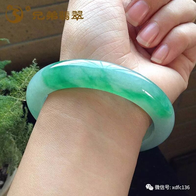 编号59656老坑冰绿冰润底清爽正装手镯(价5.2W)口径:55.4*12.1*9.5mm/66.1g 有纹 无抠感 老坑冰润底,底子细腻,清爽度高,水头足,有质感。淡底色,绿飘鲜艳浓郁,十分亮眼!这样种色水俱全的品相,不管在什么场合佩戴,都高贵有气质~喜欢赶紧入!