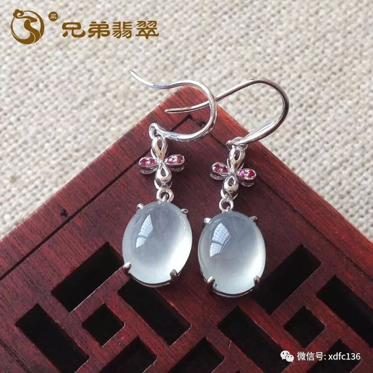编号E2024高冰起光蛋面耳钉18K金秒杀款(价2200)规格:裸石5.8*5.2*1.5mm 连金9.4*9.1*5.3mm/0.9g 另一个相差不大 两个共重1.8g 无纹裂
