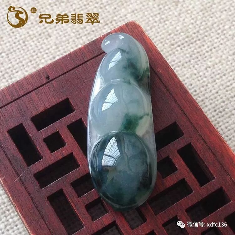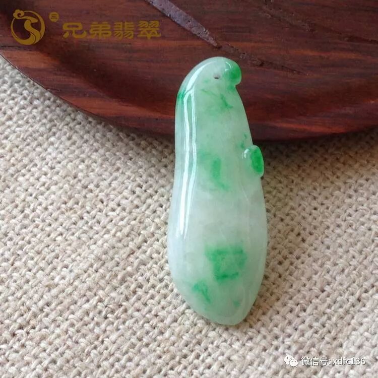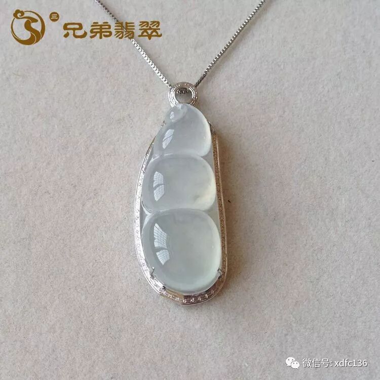 编号E2032冰干净底福豆吊坠18K金伴钻秒杀款(价5600)规格:裸石39.9*15.6*5.4mm 连金49.3*18.4*10.8mm/11.1g 无纹裂 图片可见有棉线