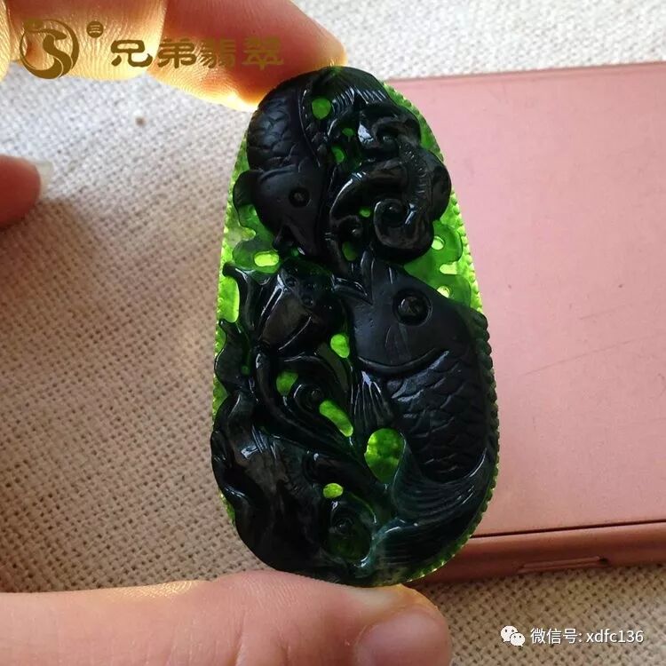 编号G4157墨翠连年有余(价800)规格:59*31.4*6.5mm/22.9g 有避纹雕 棉属于天然纹理现象 不是瑕疵